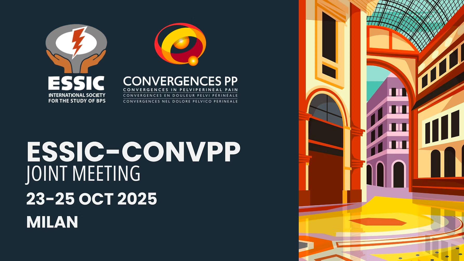 Un congrès conjoint ESSIC & Convergences, rendez-vous international unique consacré aux dernières avancées scientifiques et cliniques sur le Bladder Pain Syndrome et les douleurs pelvi-périnéales. Trois jours de conférences, ateliers pratiques et débats interactifs pour enrichir vos connaissances, partager vos expériences et façonner l’avenir de la prise en charge de ces pathologies complexes.